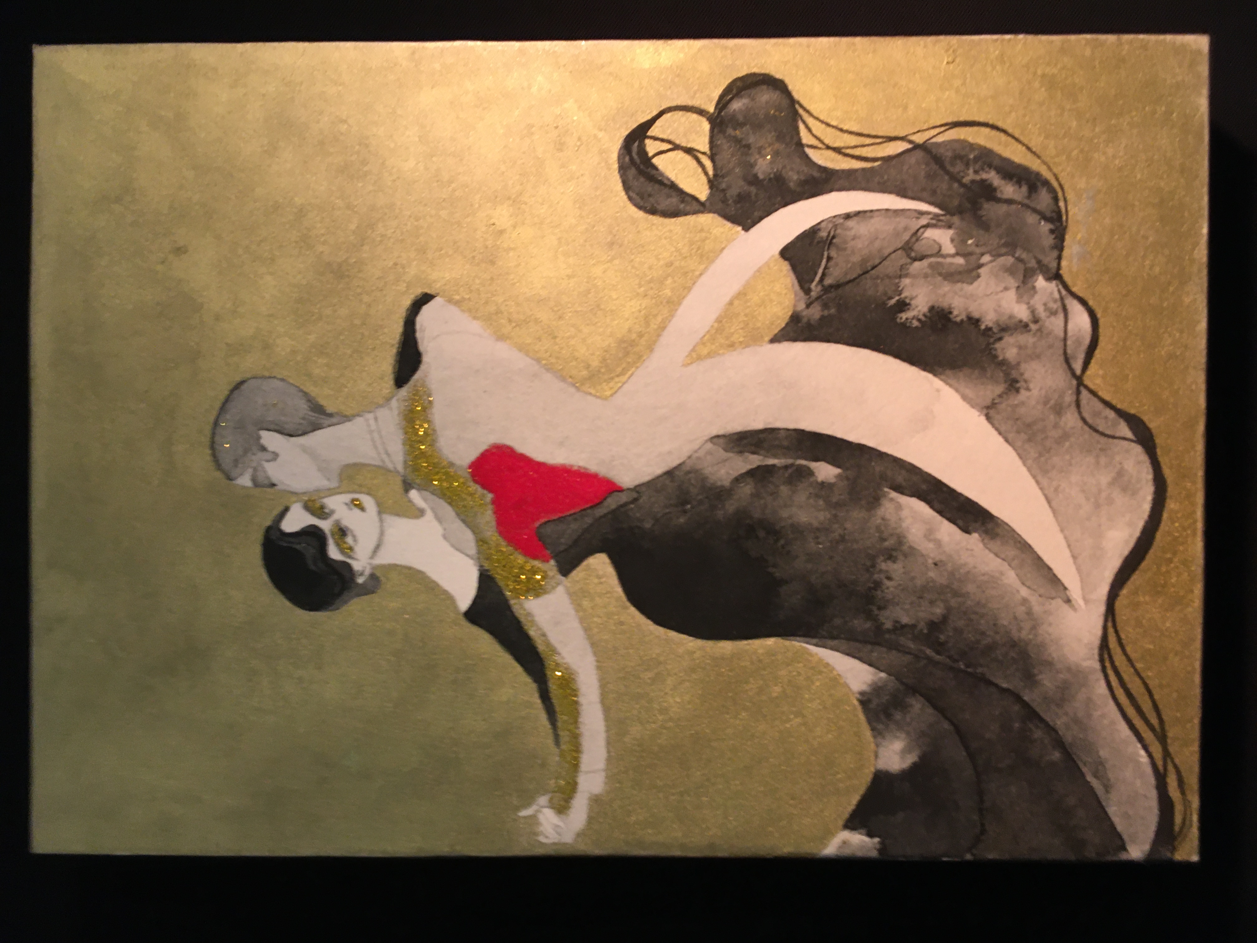 木製パネル、雲肌麻紙、スワロフスキー、紅茶、胡粉、岩絵具、墨