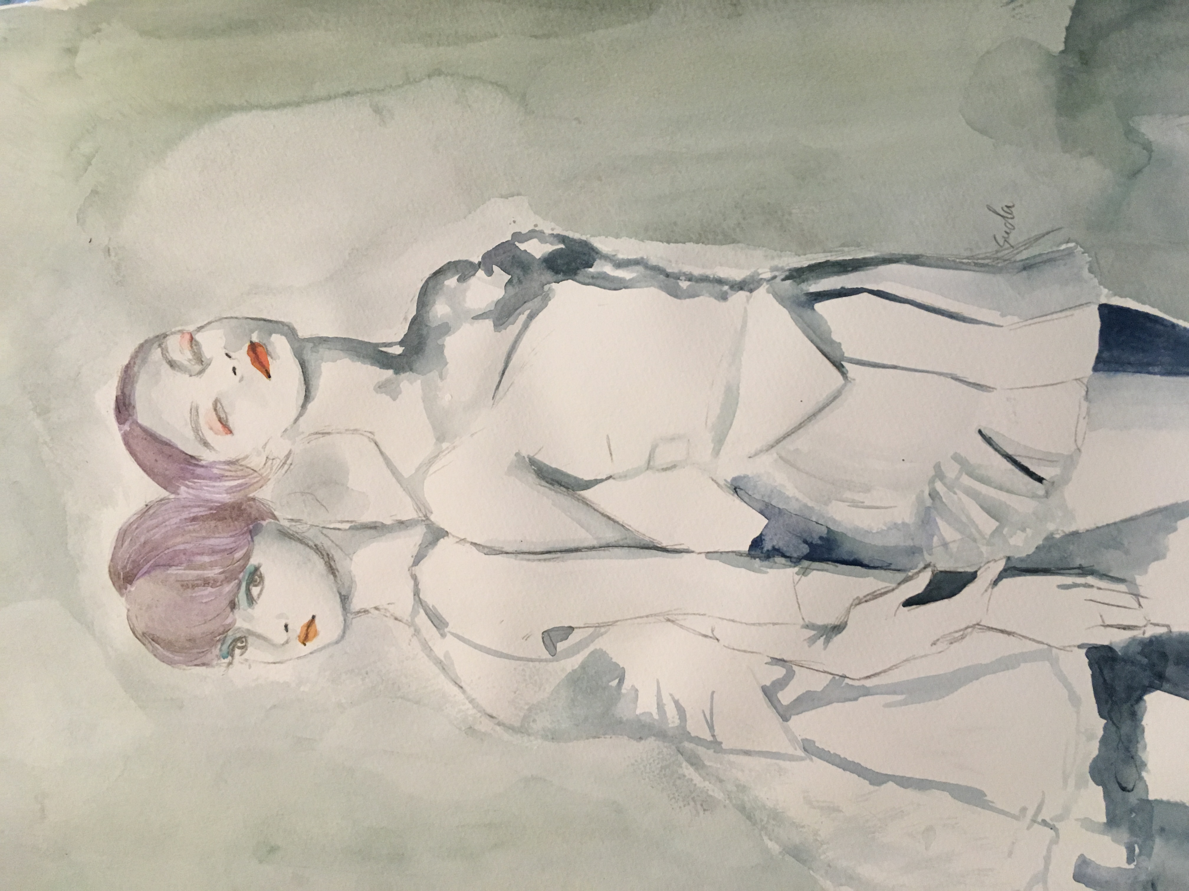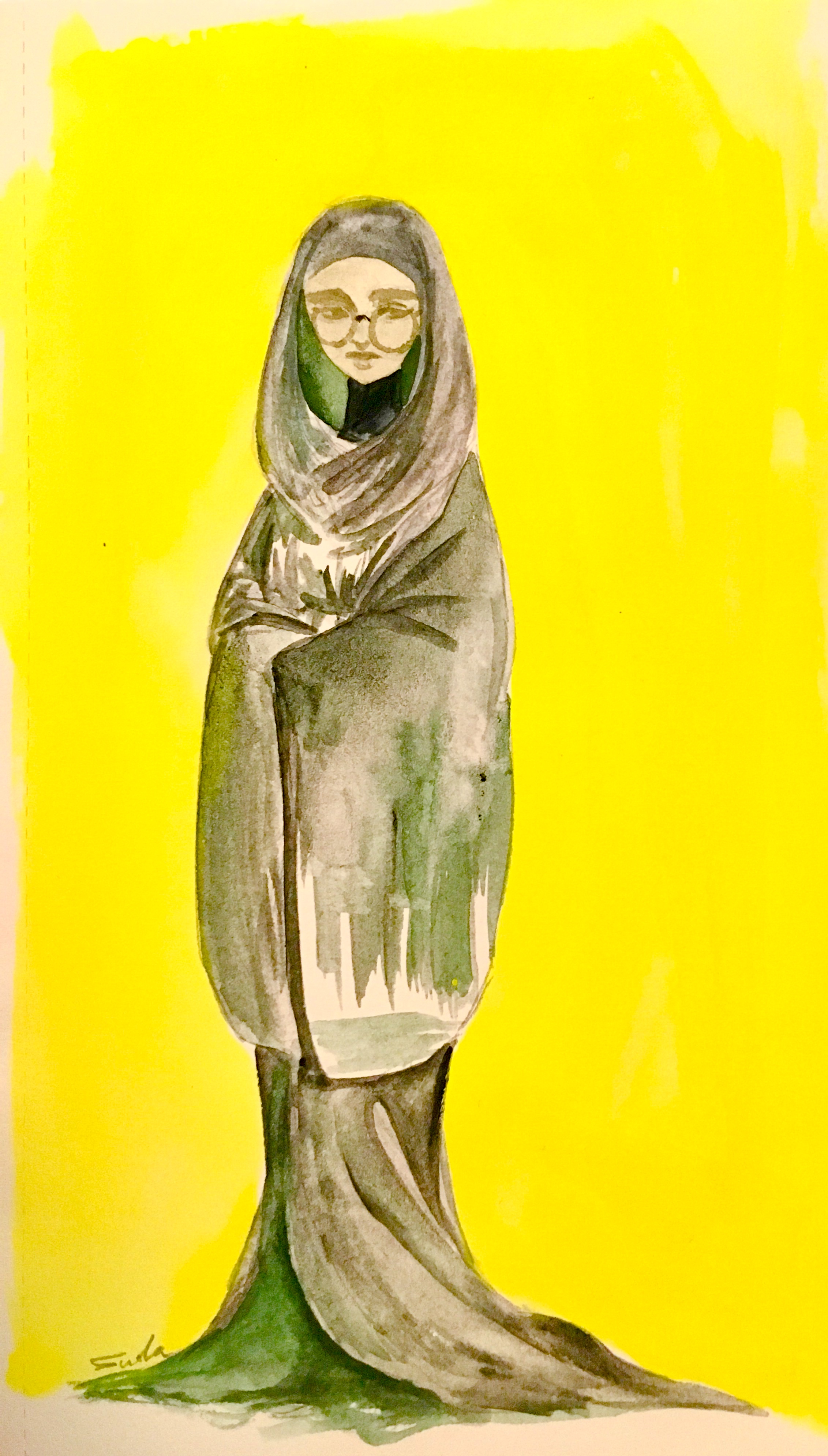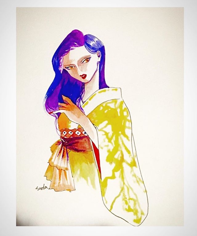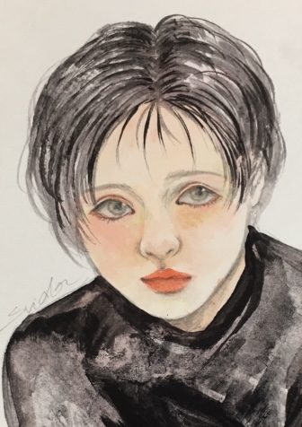 水彩紙、紅茶、胡粉、水干絵具、岩絵具、墨
